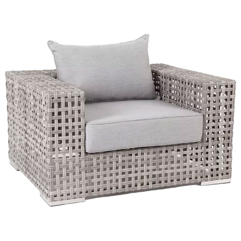 - Дополнительное описание:Плетеное кресло 'Тито' является гармоничным дополнением зоны отдыха на открытом воздухе. Основная нагрузки приходится на каркас мебели, который выполнен из высокопрочного алюминия. В качестве дизайнерского декора используется ручное плетение. Оно создано на основе искусственного ротанга 18×3,5 мм серого цвета. Уличное кресло укомплектовано двумя мягкими подушками, которые гарантируют полный комфорт. Они имеют съемные чехлы в сером оттенке, пошитые из полиэстера с плотностью 300гр/м2. Материал предварительно пропитывают влагоотталкивающим составом.